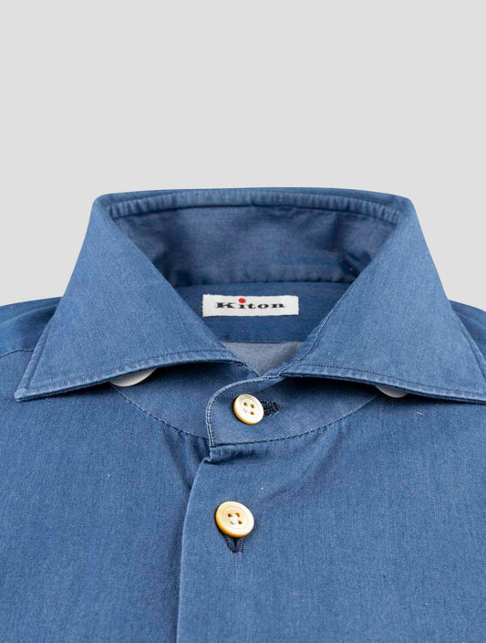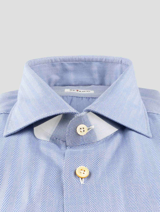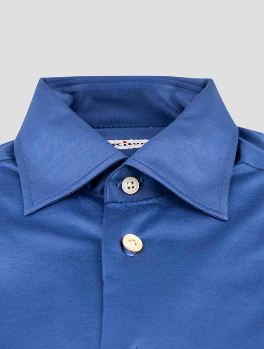 Kiton Blue Cotton Dress Shirt - Handmade Italian Regular Fit