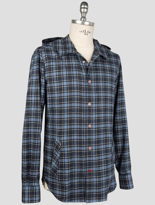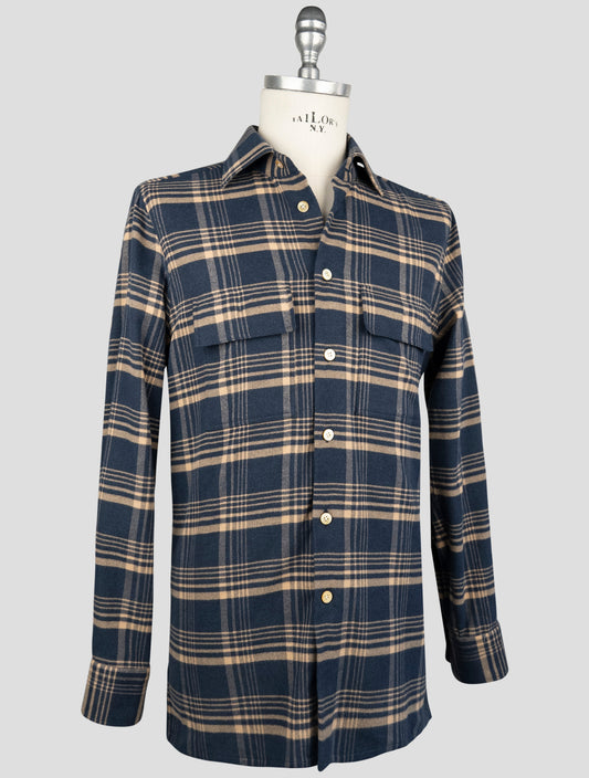 Kiton Mariano Blue Cotton Plaid Dress Shirt - Italian Handmade