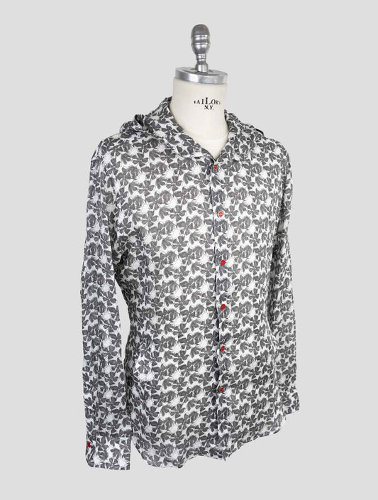 Kiton Blue White Floral Cotton Shirt Mariano - Premium Italian