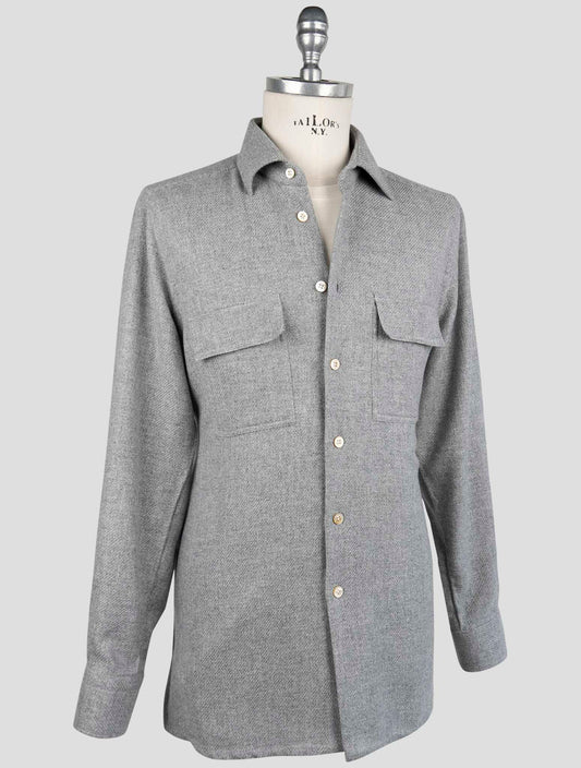 Kiton Gray Cashmere Shirt - Italian Handmade 100% Pure Cashmere