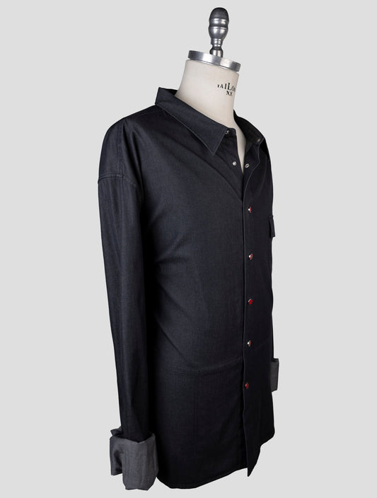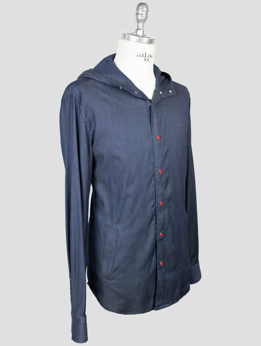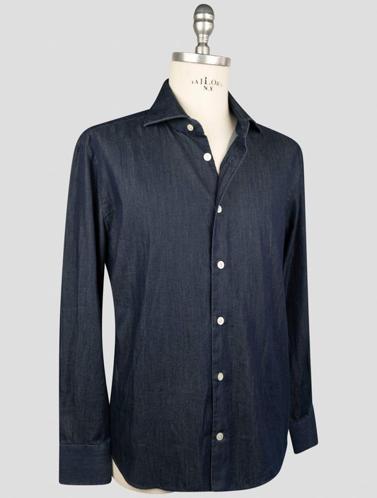 Kiton Blue Cotton Elastane Shirt - Italian Luxury Stretch Denim