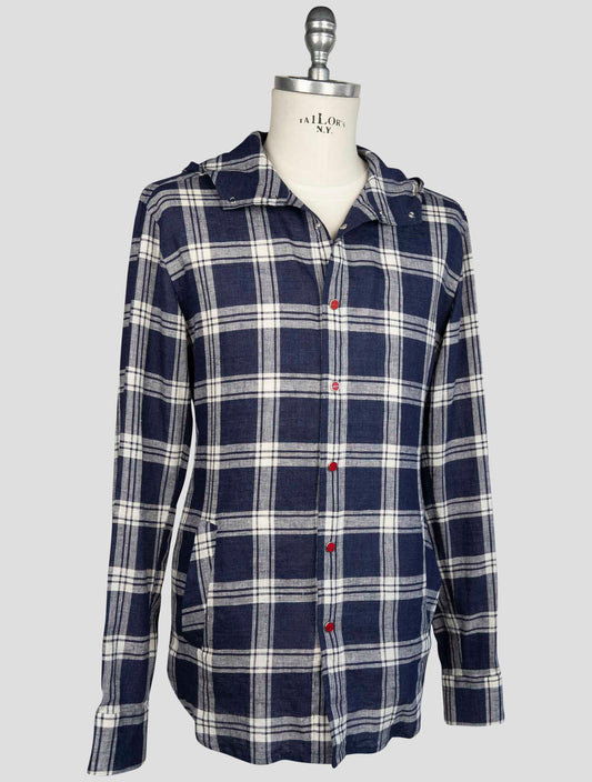 Kiton Mariano Blue White Linen Plaid Shirt - Italian Handmade