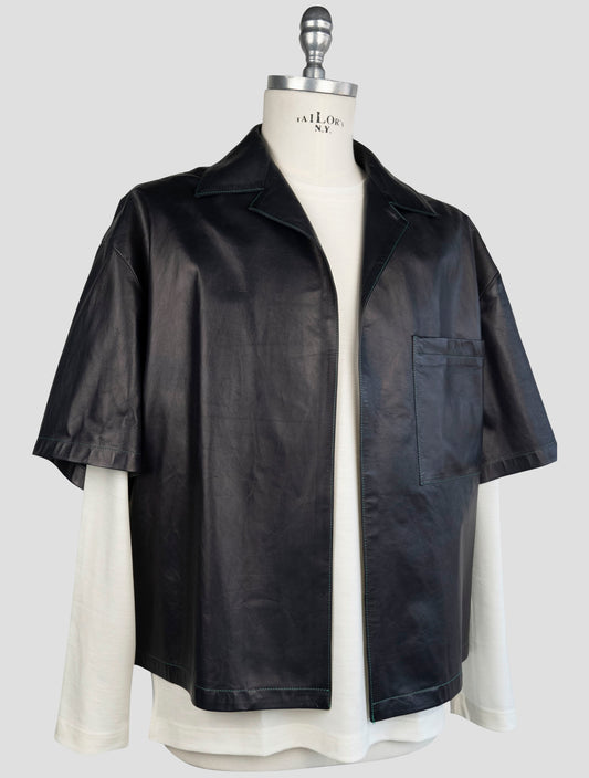 Kiton Blue Genuine Leather Short Sleeve Shirt - Italian Handmade