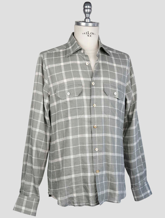 Kiton Mariano Premium Gray White Linen Shirt - Italian Crafted