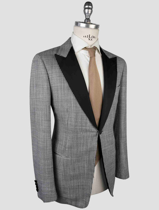 Kiton Smoking Blazer aus Kaschmir, Seide und Leinen in Schwarz-Weiß