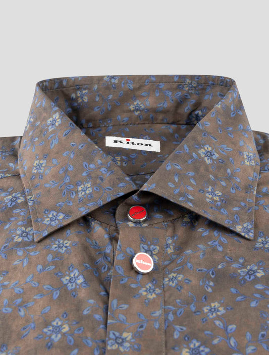 Kiton Premium Cotton Floral Shirt Blue Beige Italian Handmade