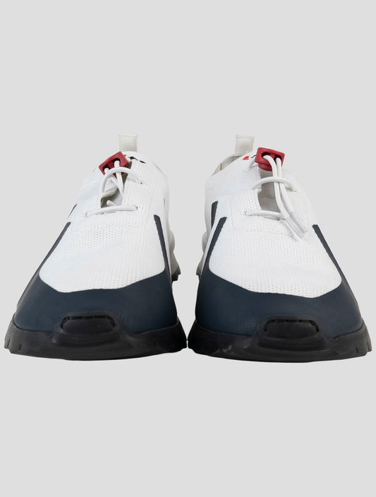 Kiton Premium Cotton Sneakers White Blue Handmade Italian Luxury