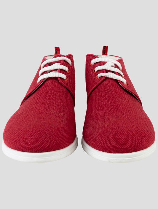 Kiton Red Viscose Linen Sneakers - Handmade Italian Luxury