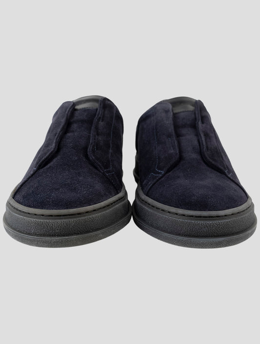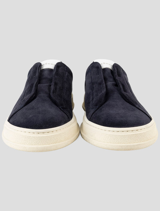 Kiton Blue Premium Leather Suede Sneakers Handmade Italy