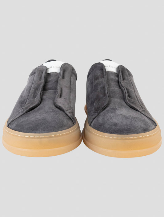 Kiton Handmade Italian Gray Leather Suede Sneakers Men
