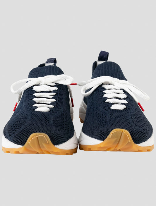 Kiton Handmade Italian Blue Cotton Sneakers Men's Luxury