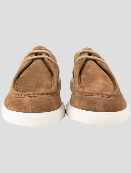 Kiton Handmade Brown Leather Suede Sneakers - Italian Luxury