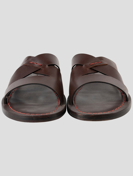 Kiton Handmade Brown Leather Slippers - Premium Italian