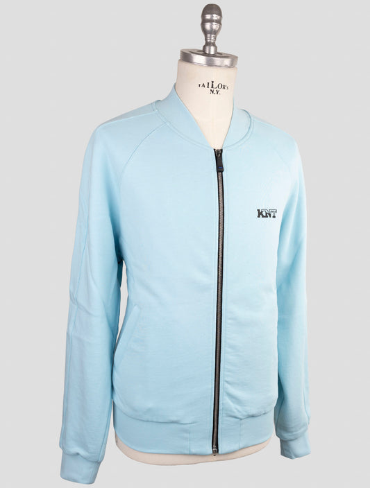 Kiton KNT Premium Cotton Full Zip Sweater Light Blue Italian