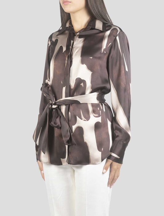 Kiton Brown Silk Shirt - Handcrafted Italian Women's Blouse