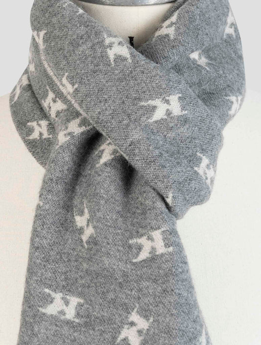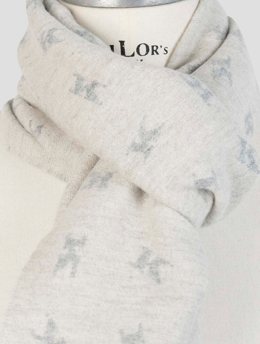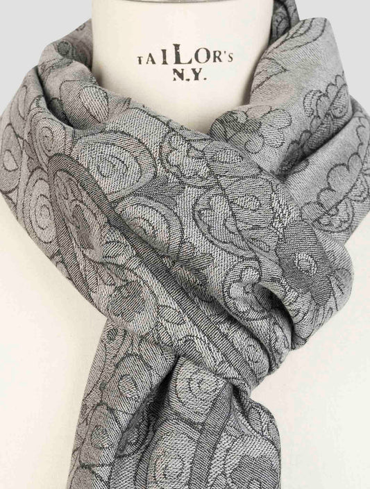 Kiton Gray Cashmere Silk Scarf - Handmade Italian Floral Pattern