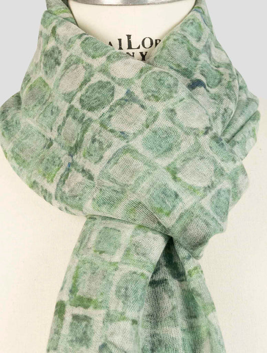 Kiton Handmade Wool Cashmere Mink Scarf Green Italian Luxury