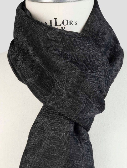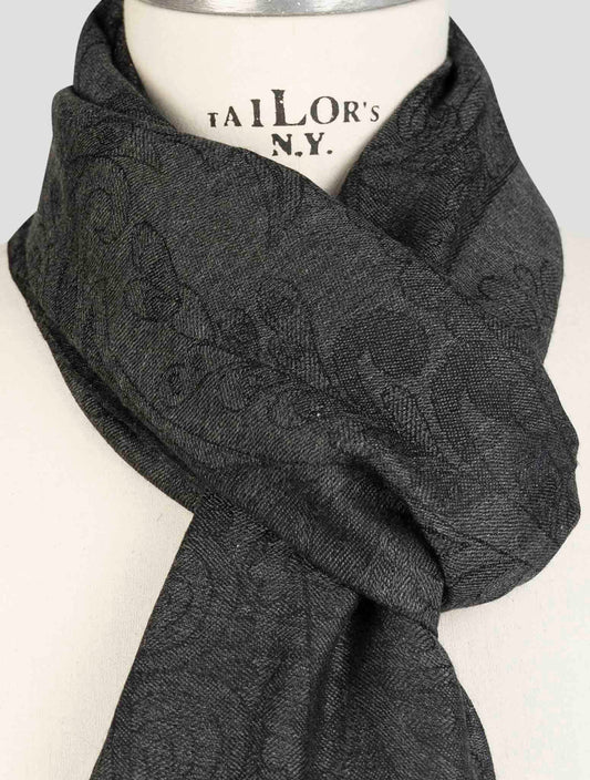 Kiton Dark Gray Cashmere Silk Scarf Handmade Italian Floral