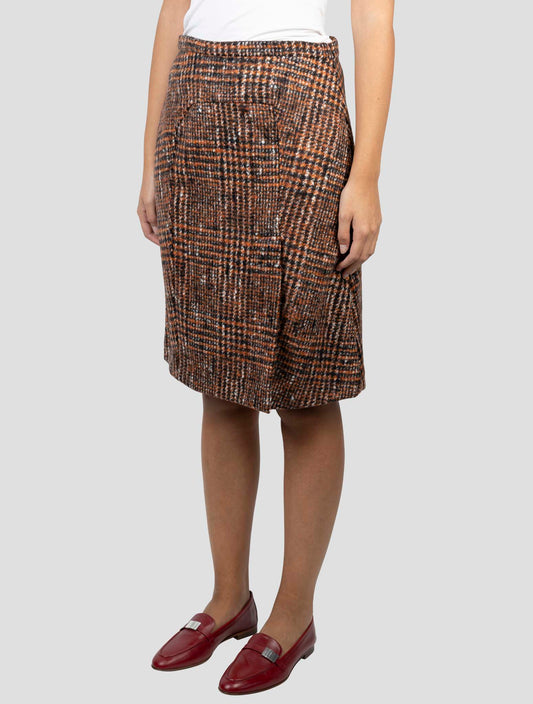 Kiton Handcrafted Cashmere Silk Linen Skirt - Multicolor Plaid