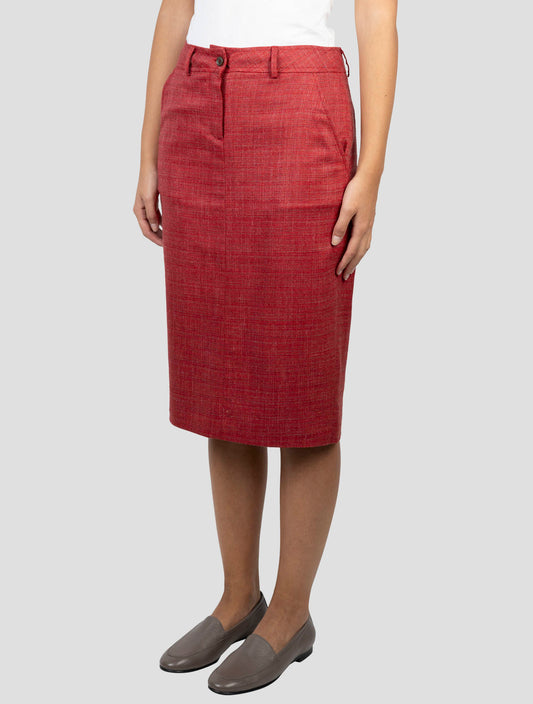 Kiton Red Wool Silk Linen Designer Skirt - Handmade Italian