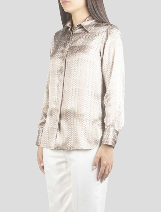 Kiton Women's Beige Silk Shirt - Geometric Pattern Italian Luxury
