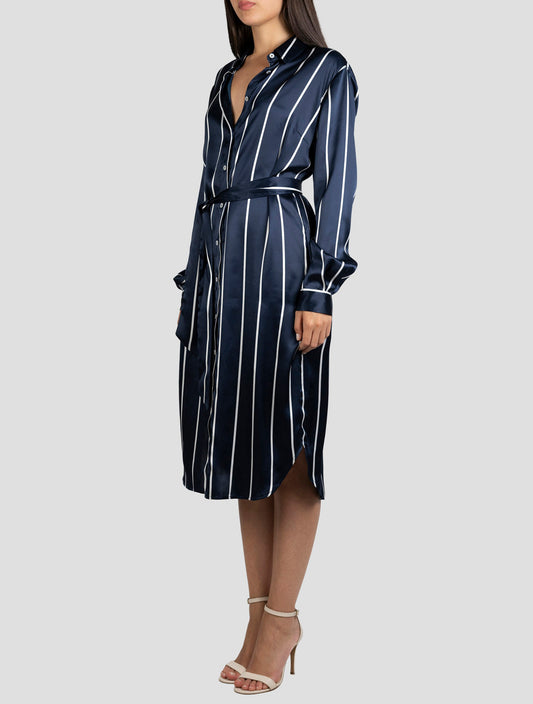 Kiton Premium Silk Dress Blue White Striped Pattern Italian
