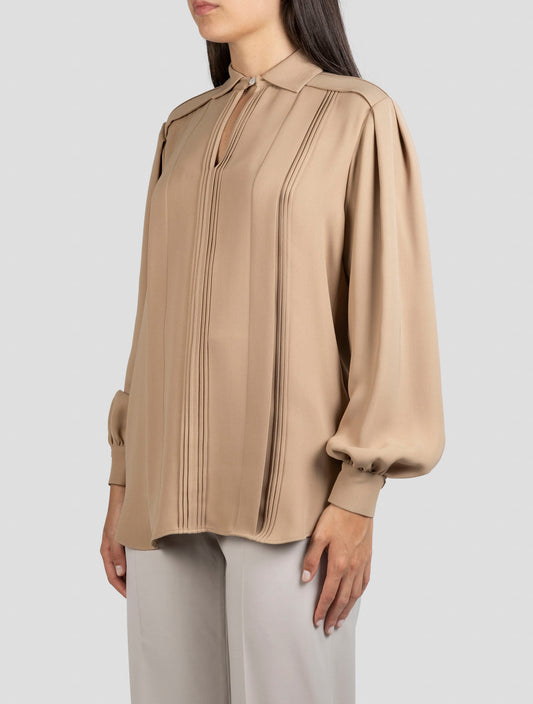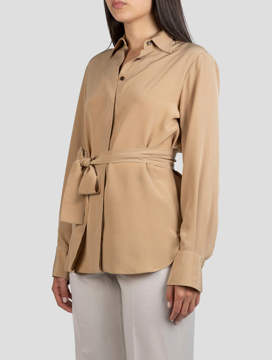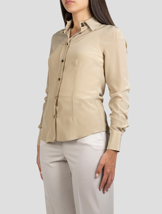 Kiton Luxury Beige Silk Shirt - Italian Handmade Women's Blouse