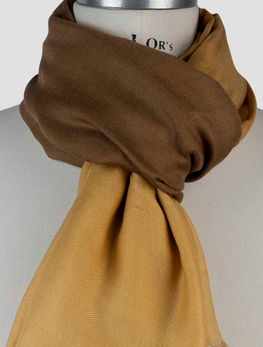 Kiton Brown Yellow Wool Cashmere Silk Scarf - Handmade Italian