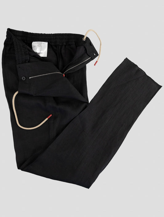 Kiton Premium Black Linen Pants - Italian Handmade Summer Trousers