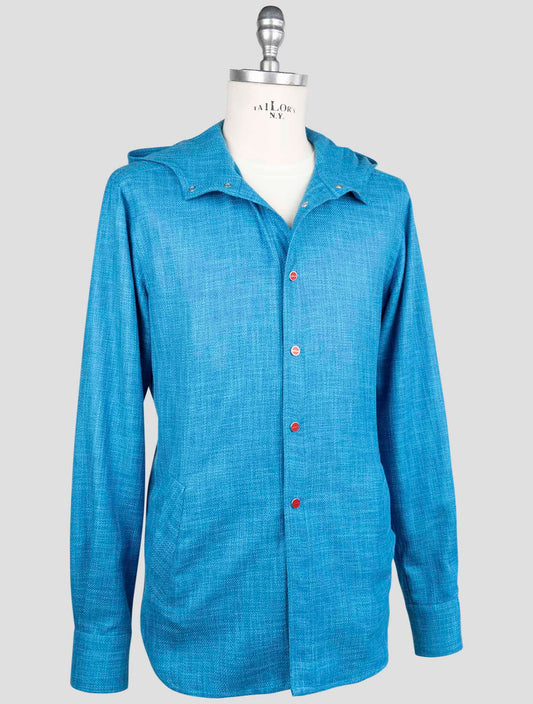 Camisa de Lino, Seda y Lana Virgen Kiton Azul Luca