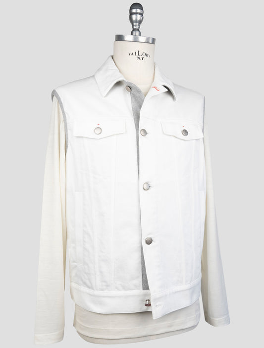 Chaleco de Lana Beige para Hombre Kiton con Inserciones de Cuero Suede