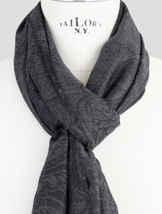 Kiton Handmade Cashmere Silk Scarf Green Gray 70x200cm Italy