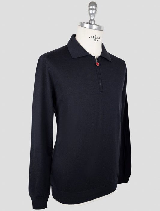 Kiton Black Wool Polo Sweater - Diamante Blu Collection