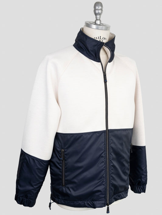 Kiton KNT Blue White Viscose Zip Coat - Italian Luxury Menswear