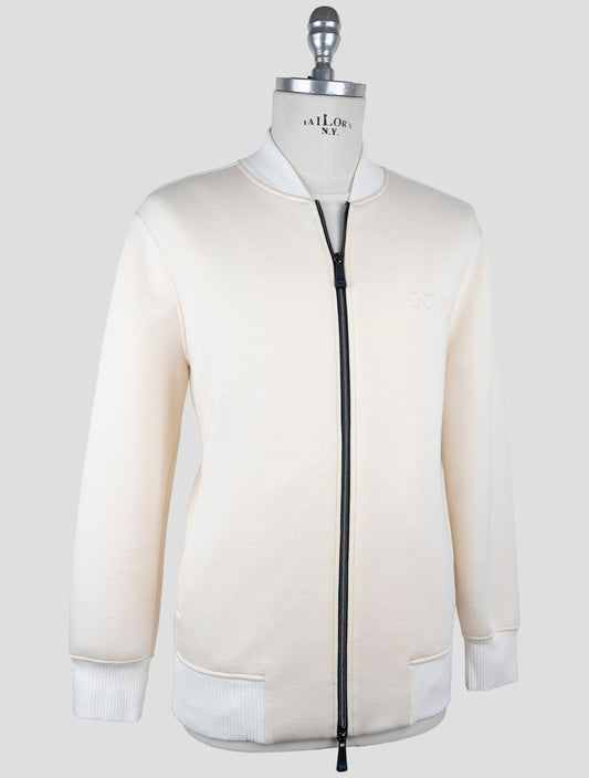 Kiton KNT White Viscose Elastane Men's Zip Coat - Italian Made