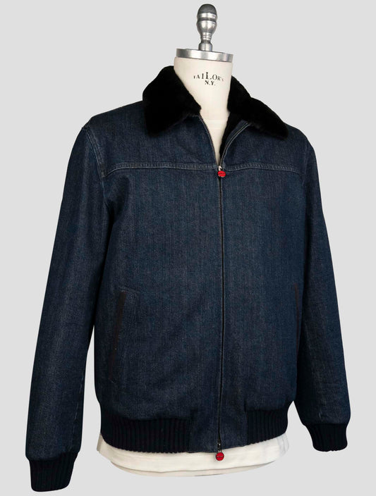 Kiton Blue Cotton Beaver Fur Lined Coat - Italian Handmade