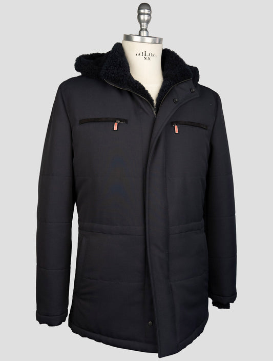 Kiton Blue Wool Cashmere Shearling Coat - Italian Luxury Outerwear