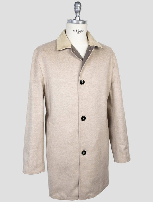 Kiton Beige Cashmere Wool Coat - Luxury Italian Shearling