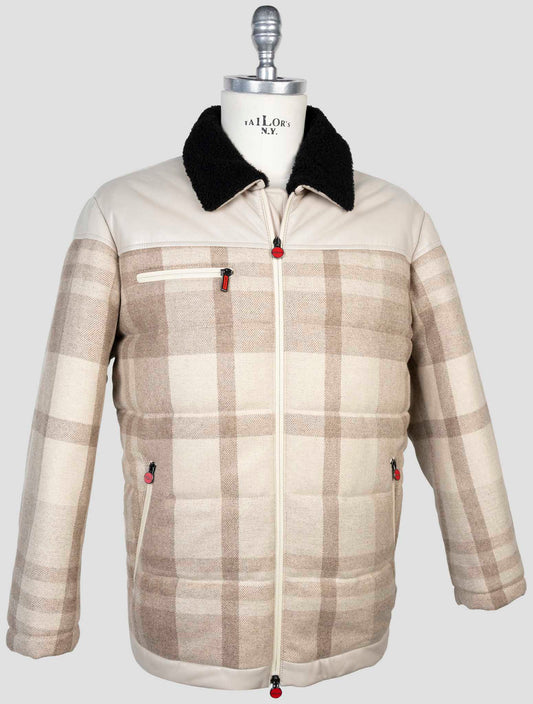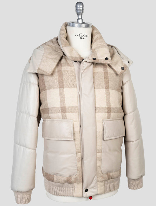 Kiton Handmade Cashmere Wool Coat Beige Plaid - Italian Luxury
