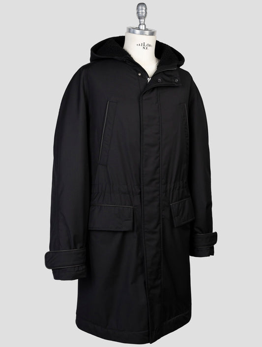 Kiton Black Shearling Overcoat - Polyester Viscose Full Zip