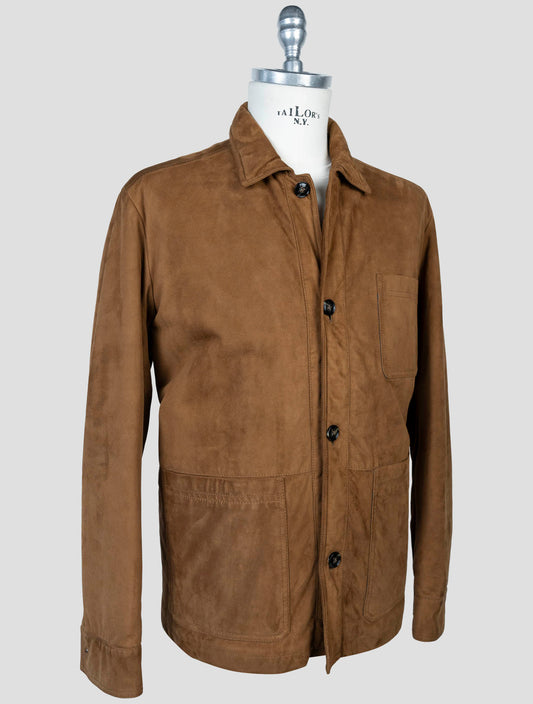 Kiton Brown Cotton Leather Suede Coat - Italian Handmade