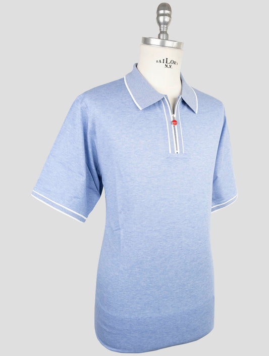Polo de Algodón Azul Claro Kiton con Media Cremallera