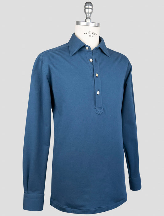 Suéter de Lana Virgen y Seda Azul Kiton con Cierre Completo