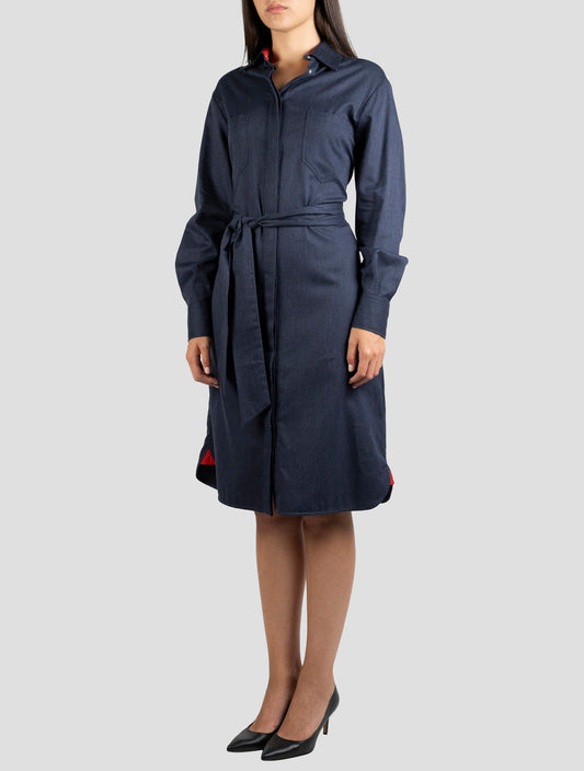 Kiton Blue Cotton Dress - Italian Handmade Women's Summer Dress
