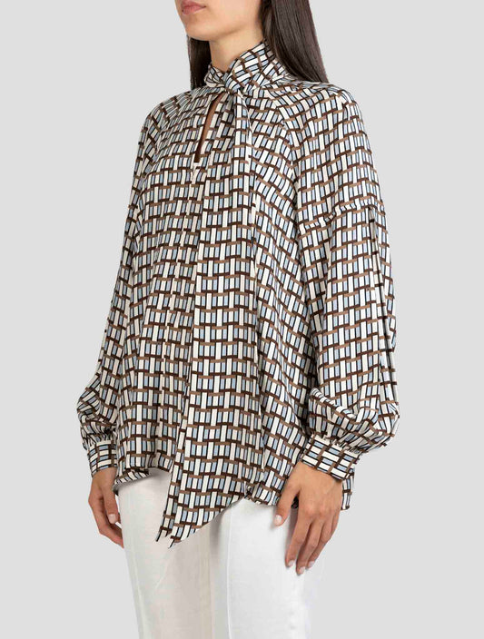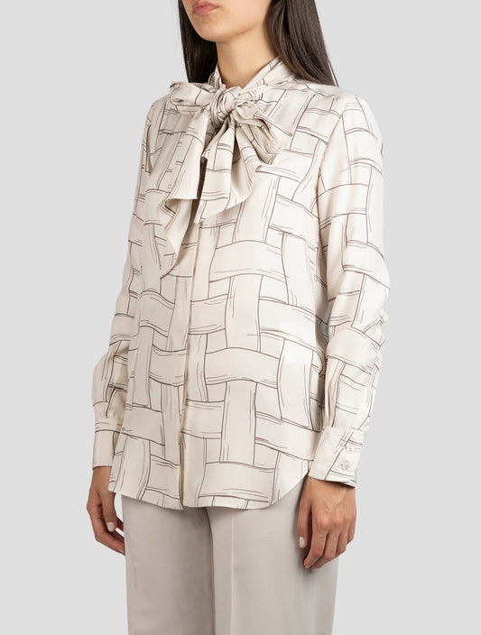 Kiton Beige Silk Fantasy Pattern Shirt Women's - Handmade Italian