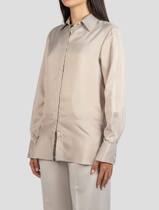 Kiton Handmade Silk Striped Shirt - Beige White Italian Women's