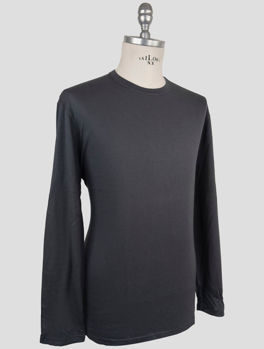 Kiton Premium Cotton Cashmere Long Sleeve T-Shirt Black Italian