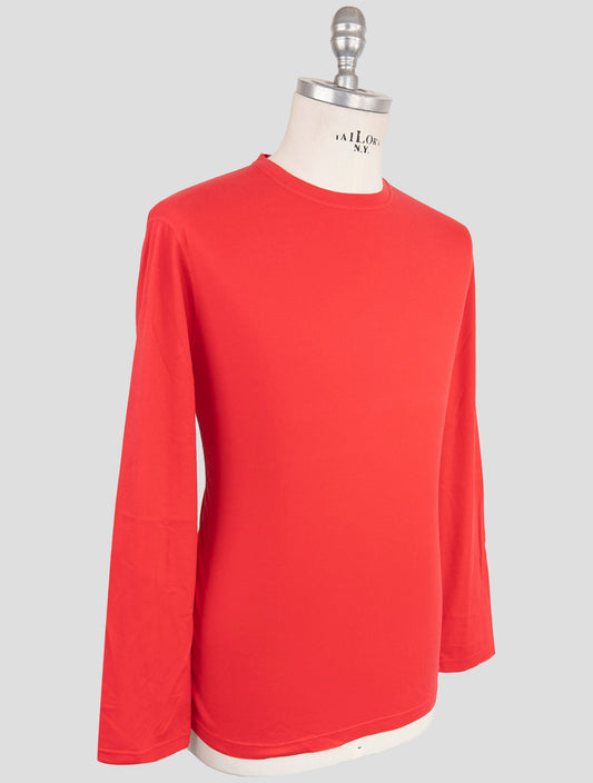 Kiton Red Cotton Cashmere Long Sleeve T-Shirt Handmade Italy