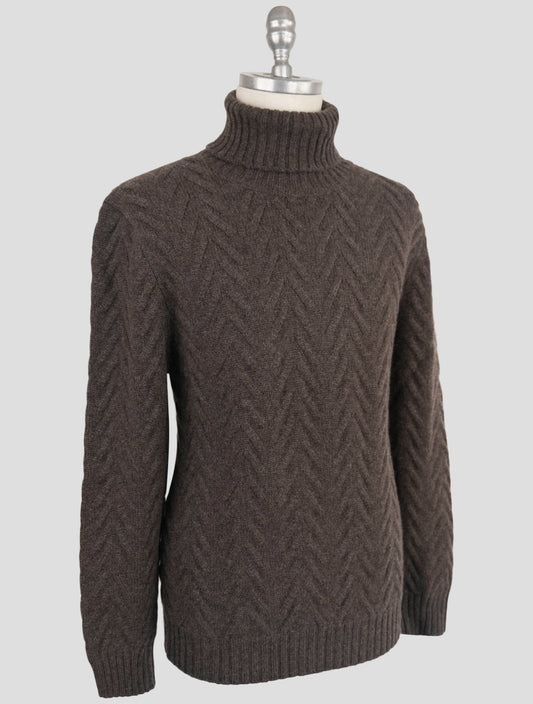 Kiton Brown Pure Cashmere Handmade Turtleneck Sweater Men's Italian