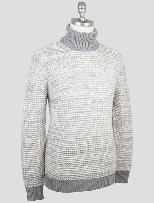 Kiton Premium Cashmere Turtleneck Gray Textured Italian Handmade